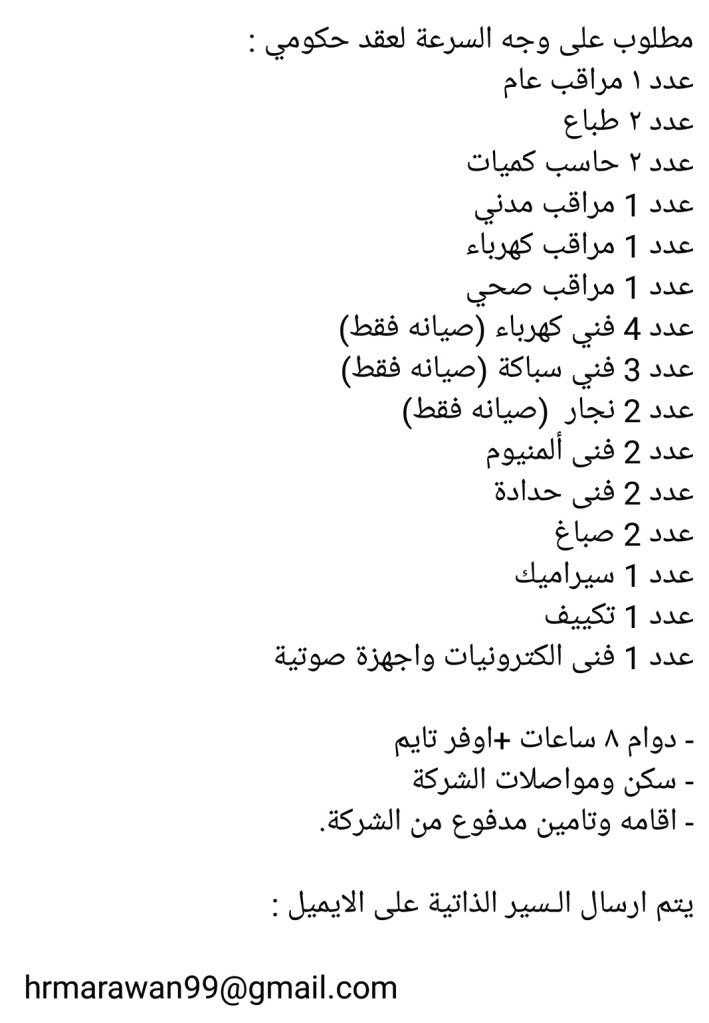 کویت میں سرکاری کنٹریکٹ بیس پروجیکٹ کے لئے فوری طور پر کچھ ملازمین کی ضرورت ہے