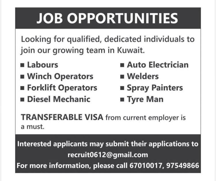 Looking for qualified, dedicated individuals to join our growing team in Kuwait. TRANSFERABLE VISA from current employer is a must