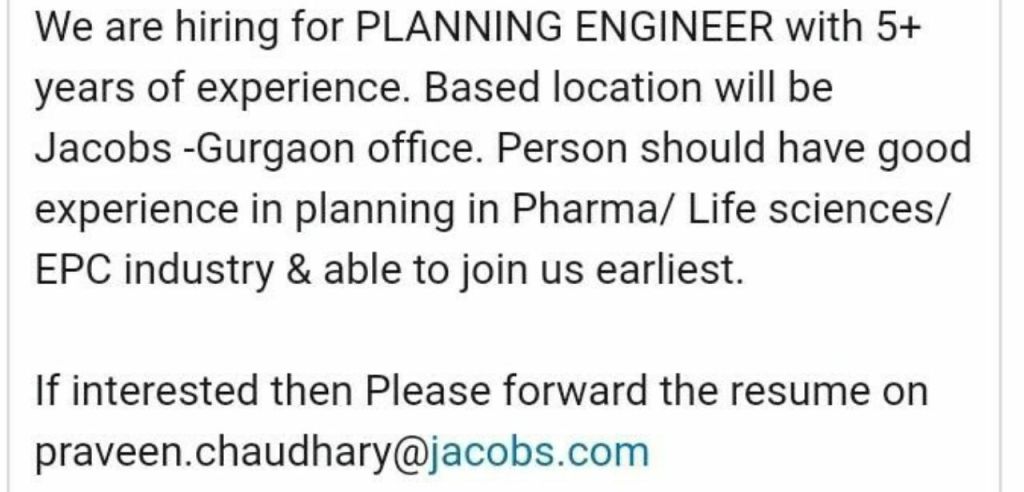 Uncategorized Job for Planing Engineer in Jacobs Gurgaon India Date: July 23, 2020Author: aamir shahzad 0 Comments Share this: Share on X (Opens in new window) X Share on Facebook (Opens in new window) Facebook Like Loading... Related