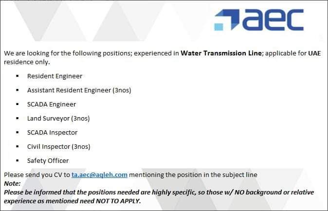 Need Staff for Water Transmission Line in UAE