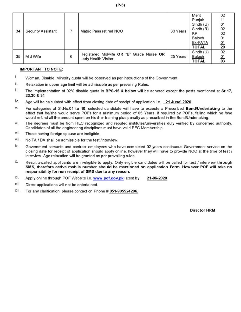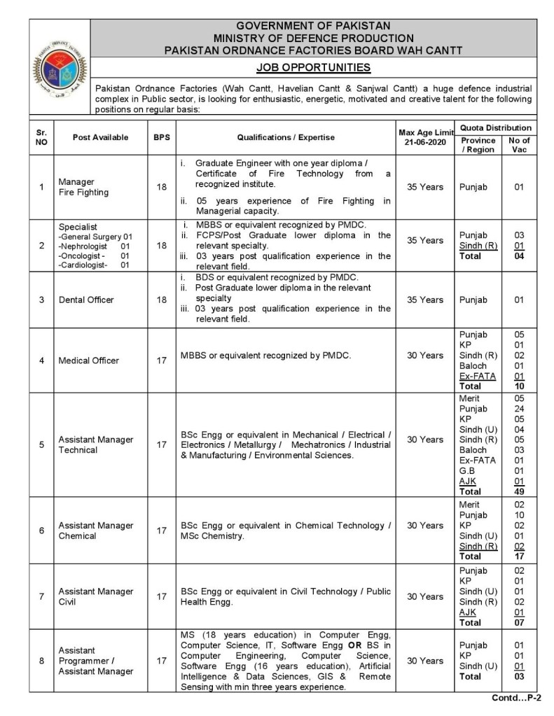 Job Type: Full Time - Address: Director HRM, Pakistan Ordnance Factories Board Wah Cantt