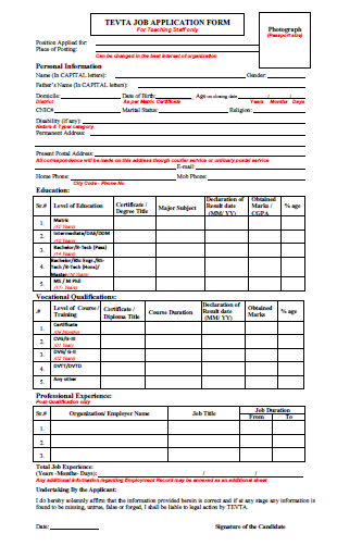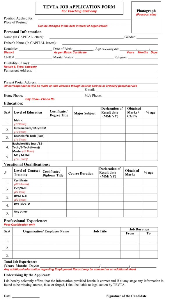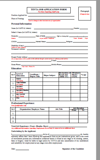 TEVTA Job Application Forms: